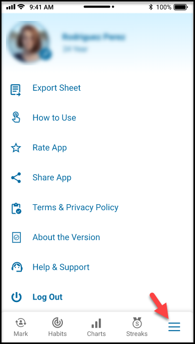 Under the Menu tab, the user can find different settings options to set up the App, which are below.